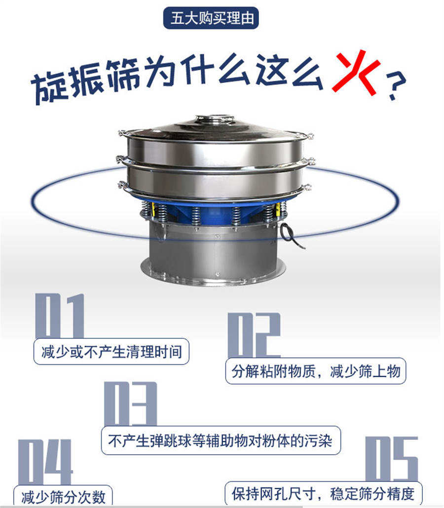 篩選范圍廣--只有系列三次元旋振篩能分選如此廣的原料范圍:任何顆粒、細(xì)粉、漿液都可以篩選。篩分細(xì)500目(28微米),過濾細(xì)5微米。網(wǎng)孔防堵塞--三次元振動功能及自動清理堵網(wǎng)裝置把堵網(wǎng)幾率降到小。 單層或多層分選--每臺旋振篩可選一至五層篩網(wǎng),能同時進行二到六個等級的分選或過濾。
