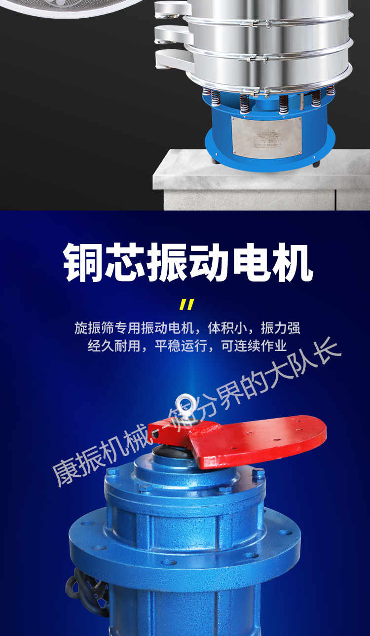 振動(dòng)無機(jī)械傳導(dǎo)—旋振篩的新型振動(dòng)源產(chǎn)生的三次元振動(dòng)強(qiáng)大而平穩(wěn),設(shè)備可安裝到任何所需位置且便于移動(dòng)。